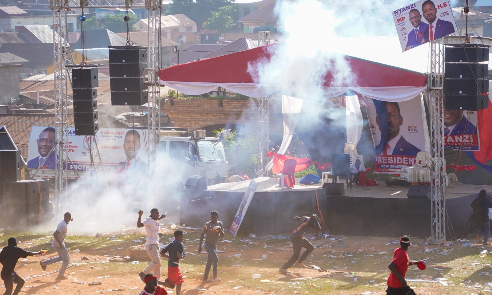 The arrests followed violent clashes during Kyagulanyi’s campaign in Kawempe South, where police fired tear gas and live bullets to disperse crowds, and some supporters reportedly hurled stones at officers.