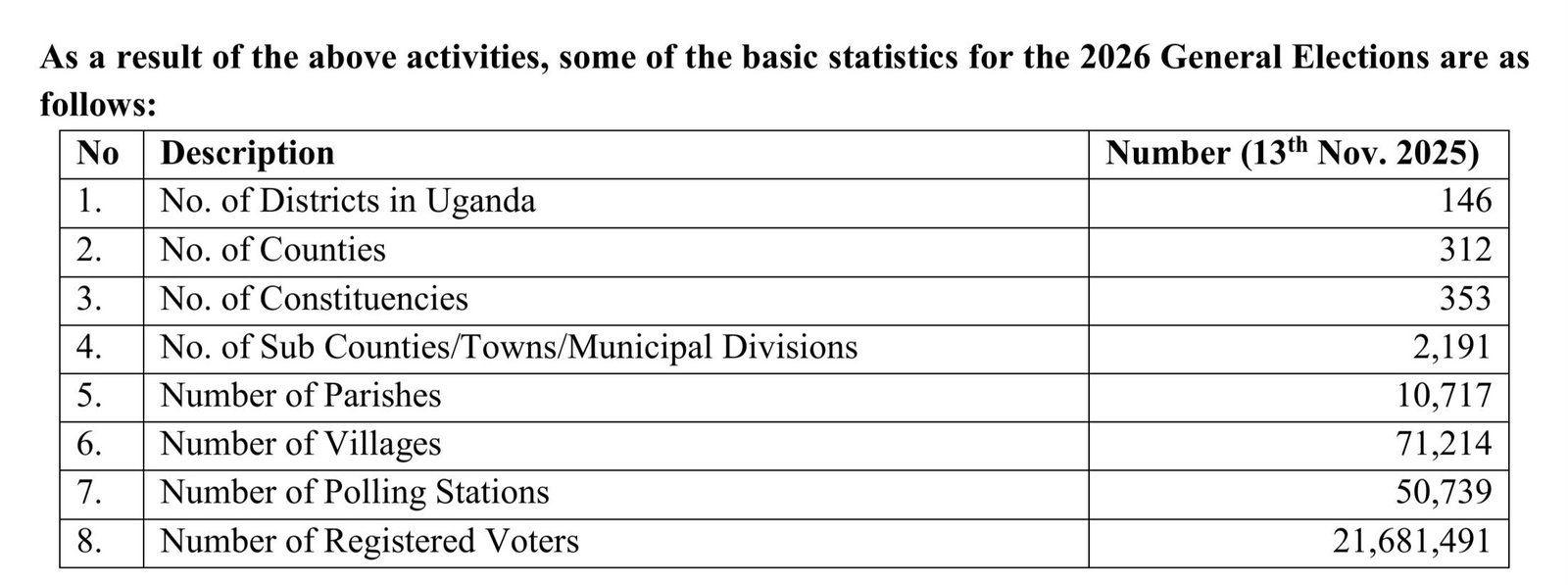 Akakiiko keby`okulonda mu ggwanga ka The Electoral Commission of Uganda kalangiridde omuwendo gwa bannauganda ogwawandiisibwa era ogusuubirwa okwetaba mu kulonda okujja okwa 2026, nga bali obukadde 21,681,491.