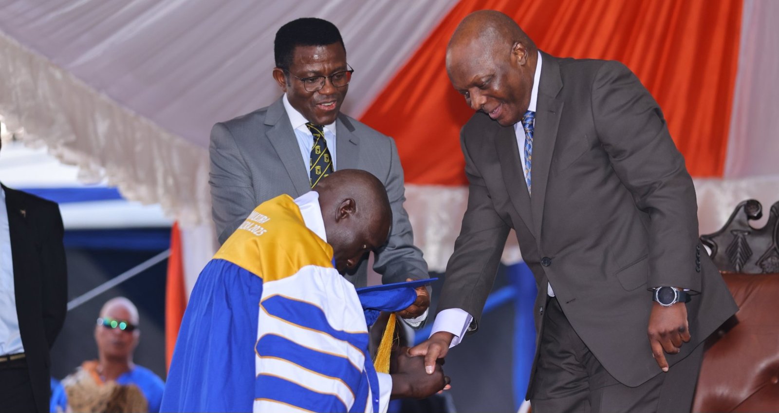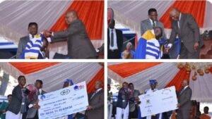 Ssaabasajja asiimye n’amwambaza ekyambalo ky’ekitiibwa kye eky’Omuzira mu Bazira, n’amukwasa n’ekyapa ky’ettaka wamu ne Cheque ya nsimbi obukadde butaano.