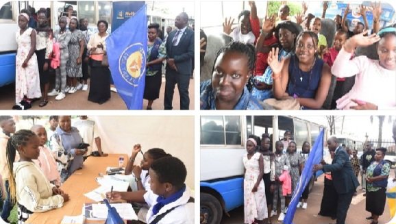 Minister w`Obwakabaka owe Byenjigiriza, Ebyobulamu ne Office ya Nnabagereka Owek Cotlida Nakate Kikomeko, yasimbudde emmotoka ezisaabazza abasaakaate okuva mu Bulange e Mengo, okwolekera Hormisdallen e Gayaza.