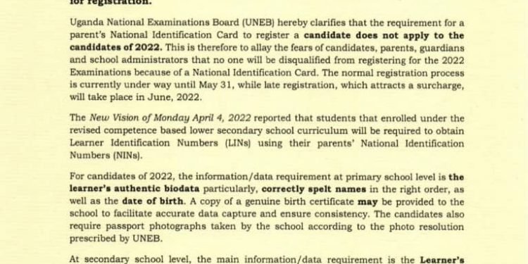 Ekitongole ekivunanizibwa ku bigezo mu ggwanga ki Uganda National Examinations Board, (UNEB), kitegezezza nti ekyókusaba abazadde endaga muntu, olwo abaana babwe balyoke bawandiisibwe okutuula ebigezo ebyakamalirizo, nti sikyekimu ku bukwakkulizo obwassibwawo okuwandiisa abaana babwe.