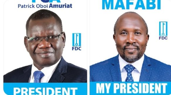 Embiranye y’okweyagaliza bendera ebadde wakati wa president wa FDC Eng Patrick Amuriat Oboi, ne Ssaabawandiisi w’ekibiina Nathan Nandala Mafaabi.