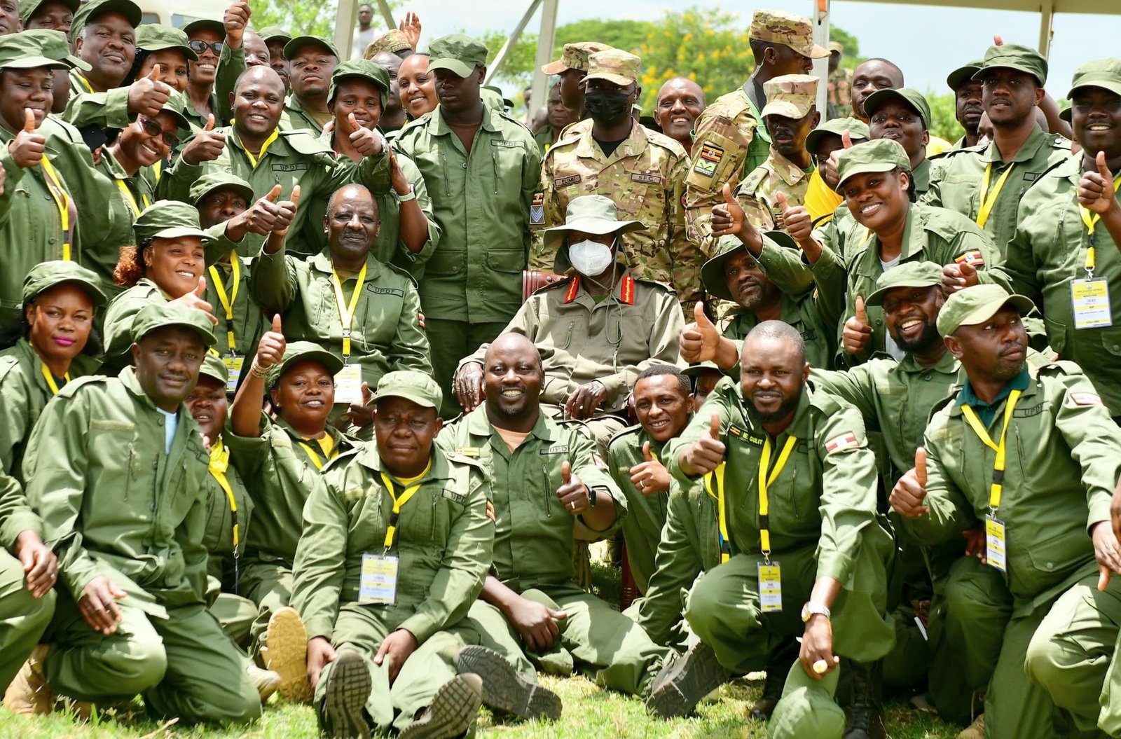 Abakulembeze ba NRM bwebaabadde mu lusirikale lwabwe e Kyankwanzi olwamaze wiiki namba nga luyinda, baayambadde ngoye z’eggye ly’eggwanga nga kuliko n’ebigambo bya UPDF.