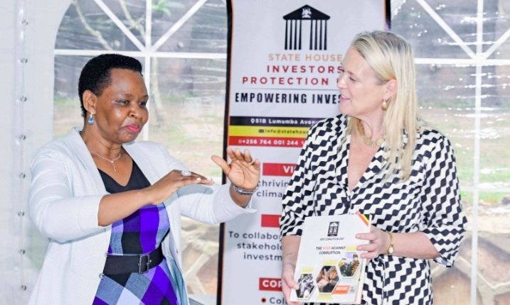 Col. Edith Nakalema abadde asisinkanye omubaka wa Bungereza mu Uganda Ambassador Lisa Chesney ku wofiisi z’akakiiko ka State House Investors Protection Unit (SHIPU) mu Kampala, okwogera ku ngeri y’okutumbula eby’obusuubuzi wakati wa Uganda ne Bungereza nokunyweza enkolagana eriwo.