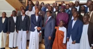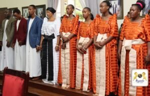 Katikkiro w’Ekika ky’Emmamba Namakaka Kyobe Kyomubazzi Kaberenge wamu n’Abamasiga banjulidde Katikkiro Charles Peter Mayiga Omutaka omukulu ow’Akasolya Omuggya Gabunga owa 38 Mubiru Ziikwa V.