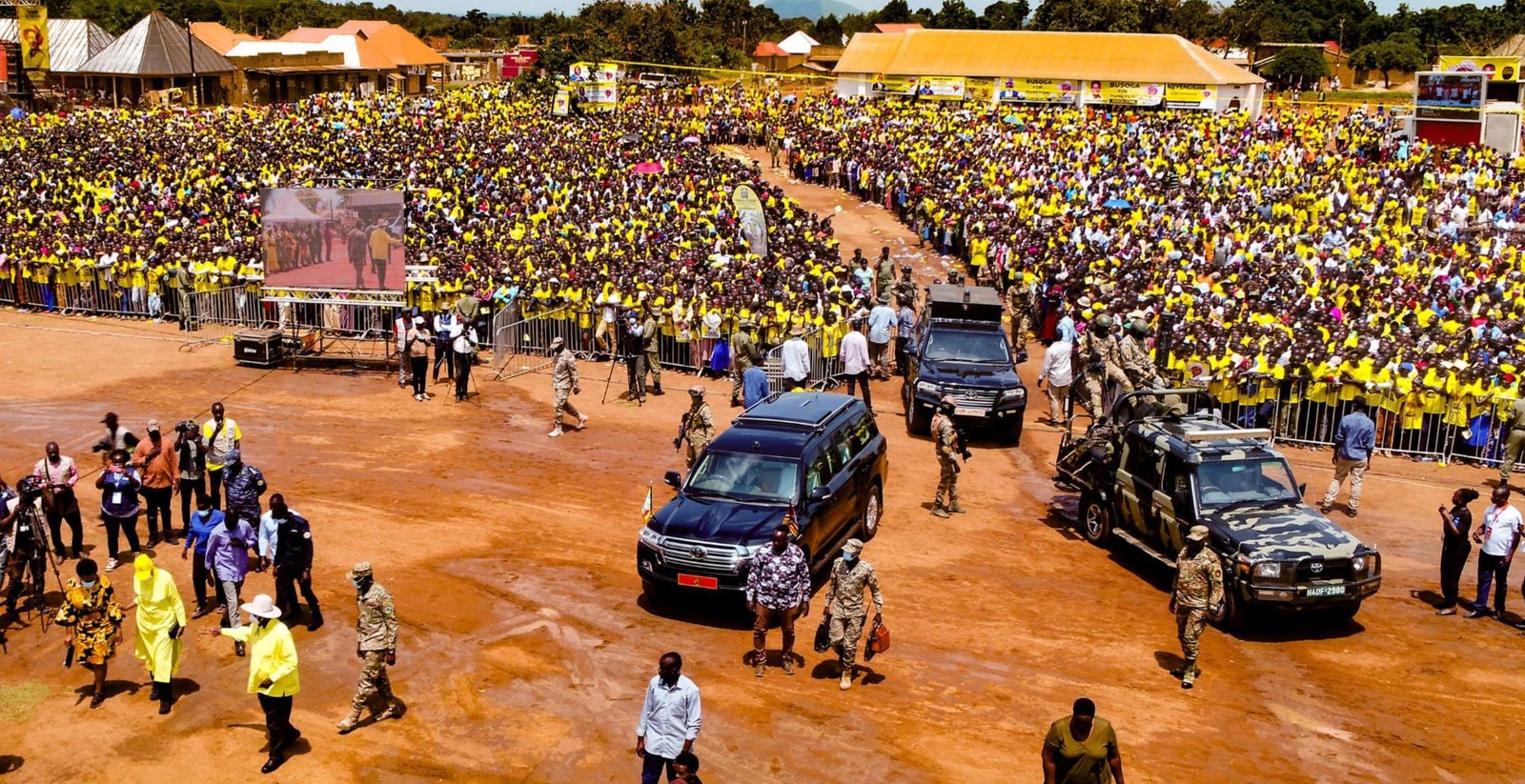 President Museveni abadde mu lukuηaana lwakubye ku kisaawe kya Namayingo Primary School mu district ye Namayingo gyasabidde abaayo okumuyiira akalulu mu kulonda okujja.