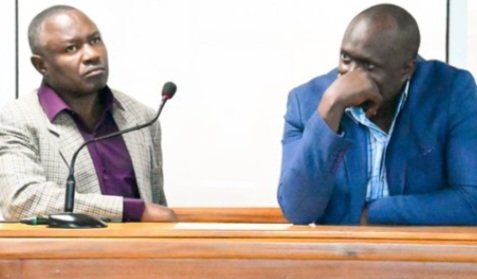 Abakwatiddwa kuliko akulira etambuza y’emirimu (CAO) mu district ye Kamuli, Mukiibi Nasser, n’akulira eby’ensimbi mu district yeemu Kifuuse Alex.