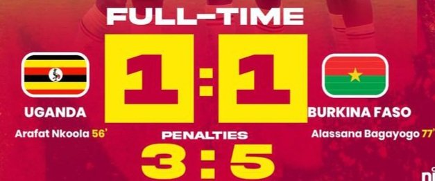 Uganda Cubs ewandukidde ku mutendera gwa ttiimu 16, bwekubiddwa Burkina Faso goolo 5-3 eza paneti, nga mu dakiika 90 omupiira guno guwedde goolo 1-1, nga eya Uganda Cranes eteebeddwa Arafat Nkoola mu dakiika eya 56.